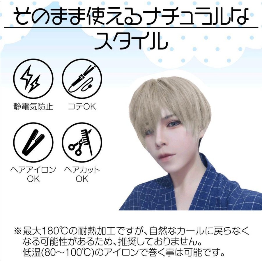 ※撮影状況や光の当たり具合、ご覧になる環境(PCのモニタやスマホの画面)などにより、色合いが異なって見える場合があります。写真と実物では色や風合いが若干異なる場合がございますのでご了承ください。 こちらはセットが完成形ではないウイッグの為、商品をお受け取り後ワックスなどでヘアセットをお願いしております。 到着時は生産上でカットされたファイバーや、ミシンでファイバーを縫い付けた際の縫い余りのファイバーが比較的多く混入しており、抜け毛のように見える場合がございます。 ご使用前に、ウィッグを軽く振り優しくブラッシングしてからご着用ください。