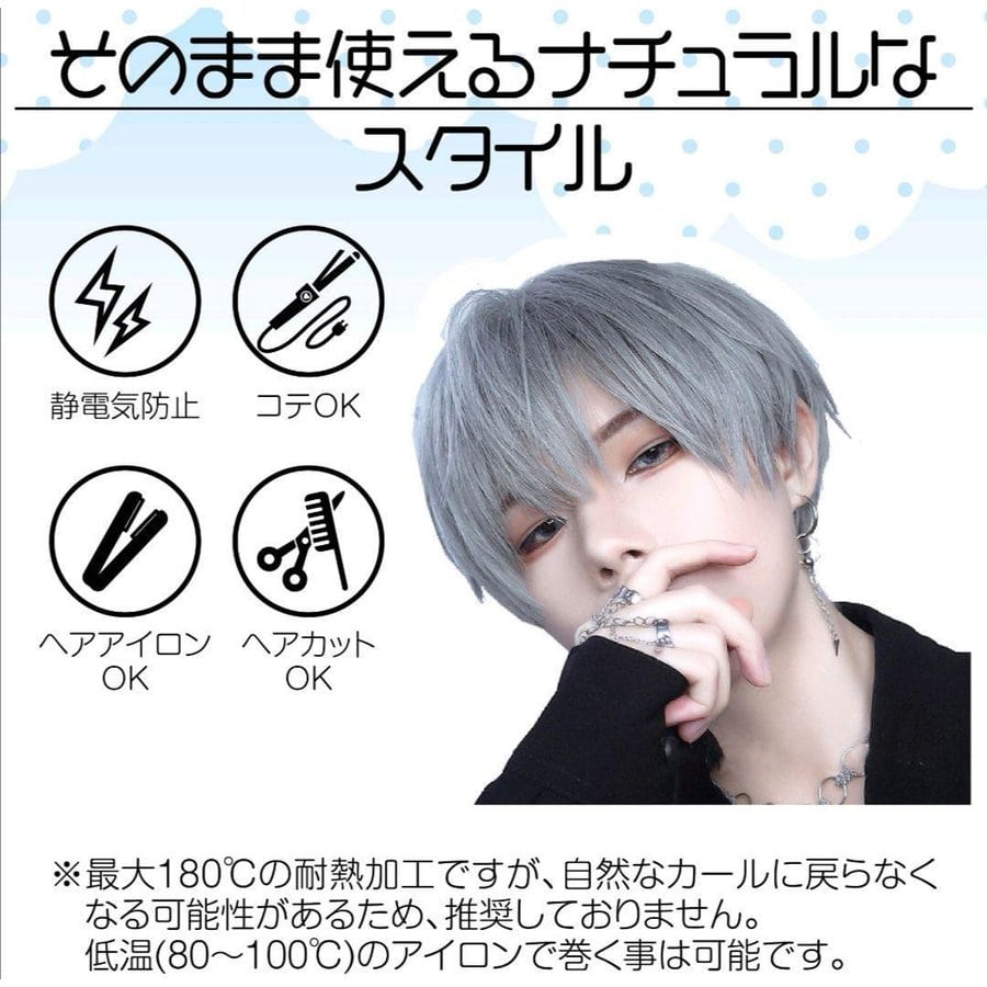 ※撮影状況や光の当たり具合、ご覧になる環境(PCのモニタやスマホの画面)などにより、色合いが異なって見える場合があります。写真と実物では色や風合いが若干異なる場合がございますのでご了承ください。 こちらはセットが完成形ではないウイッグの為、商品をお受け取り後ワックスなどでヘアセットをお願いしております。 到着時は生産上でカットされたファイバーや、ミシンでファイバーを縫い付けた際の縫い余りのファイバーが比較的多く混入しており、抜け毛のように見える場合がございます。 ご使用前に、ウィッグを軽く振り優しくブラッシングしてからご着用ください。
