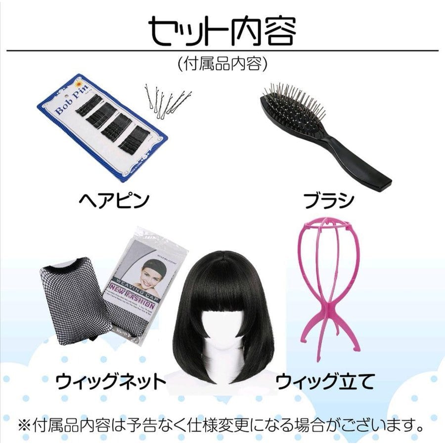 ウィッグ+ウィッグネット+ヘアピン+ウィッグスタンド+ヘアブラシ