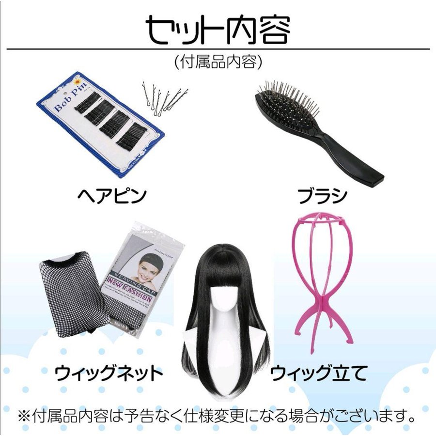 ウィッグ+ウィッグネット+ヘアピン+ウィッグスタンド+ヘアブラシ