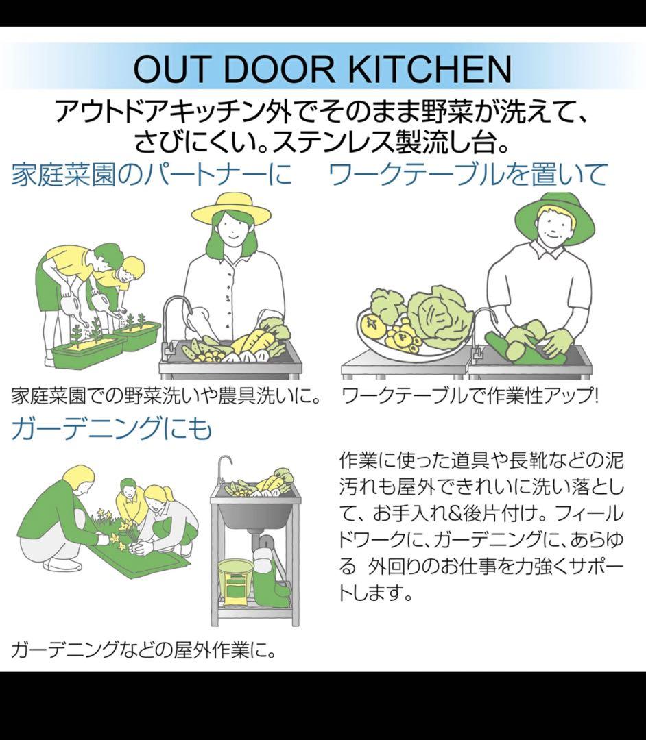 お庭でのガーデニングやBBQなどでも大活躍する流し台です。