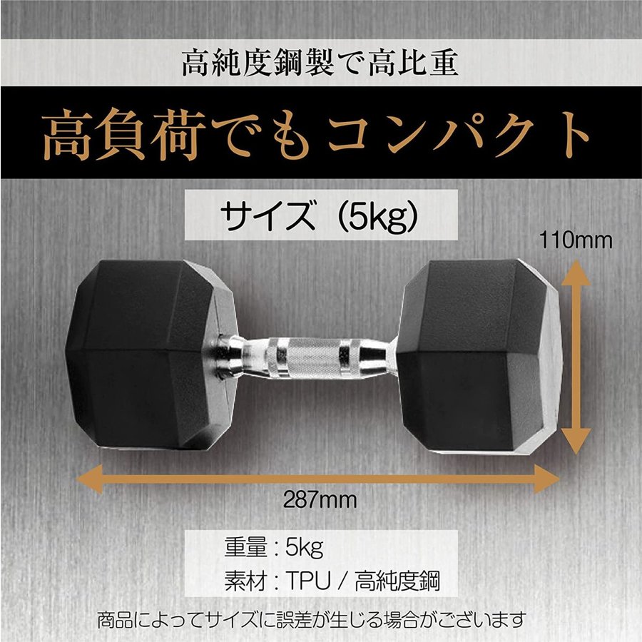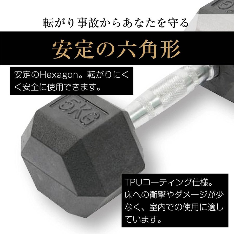ダンベル同士がぶつかっても嫌な音などしない為、夜に行うトレーニングにも最適です。 また、弾力性のある素材が床の傷などから守ってくれます。