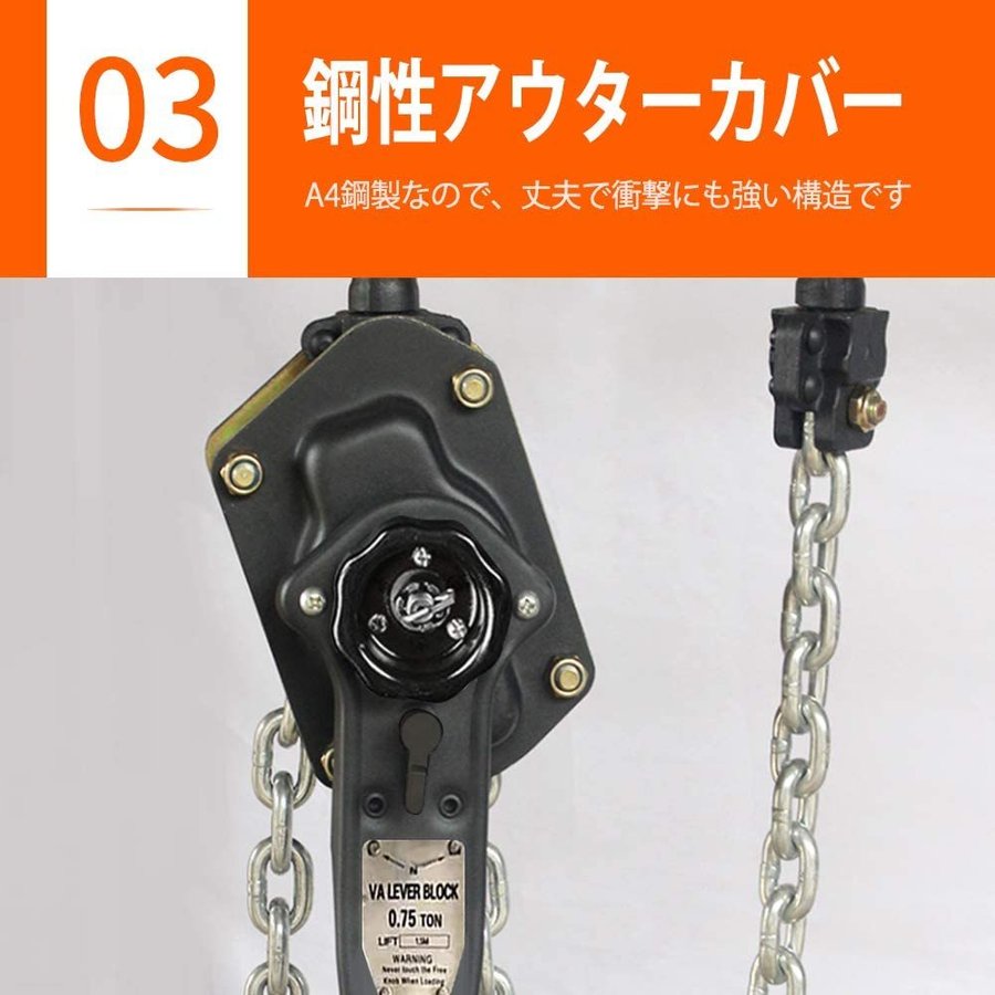 0.75t ホイストチェーン チェーンガイドローラー マンガン銅フック ワンタッチ逆転式 G80チェーン 高品質