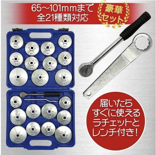 自動車整備 ツールキット 23個 国産車 輸入車 バイク 65-101mm対応 工具 自動車整備 エレメント交換 エンジン 工具 自動車整備 ソケット作業 スパナ修理 ツールキット 差込角9.5mm