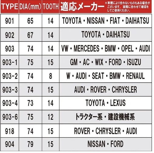 65mm/67mm/73mm/74mm/75mm/76mm/79mm/ 84mm/86mm/89mm/91mm/92mm/95mm/101mm 14種 計21個