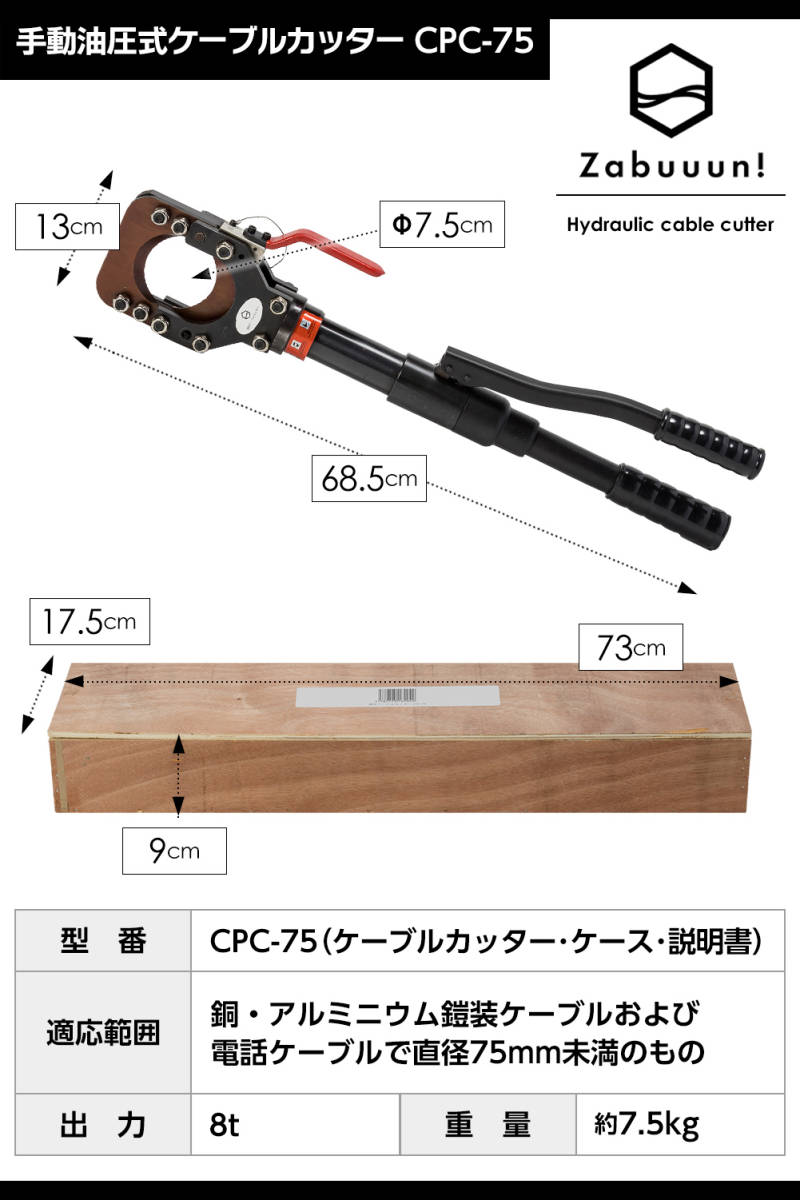 【切断範囲】銅・アルミニウム装甲ケーブル及び電話ケーブルで、直径約75mm未満のもの