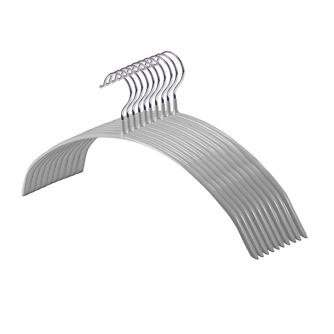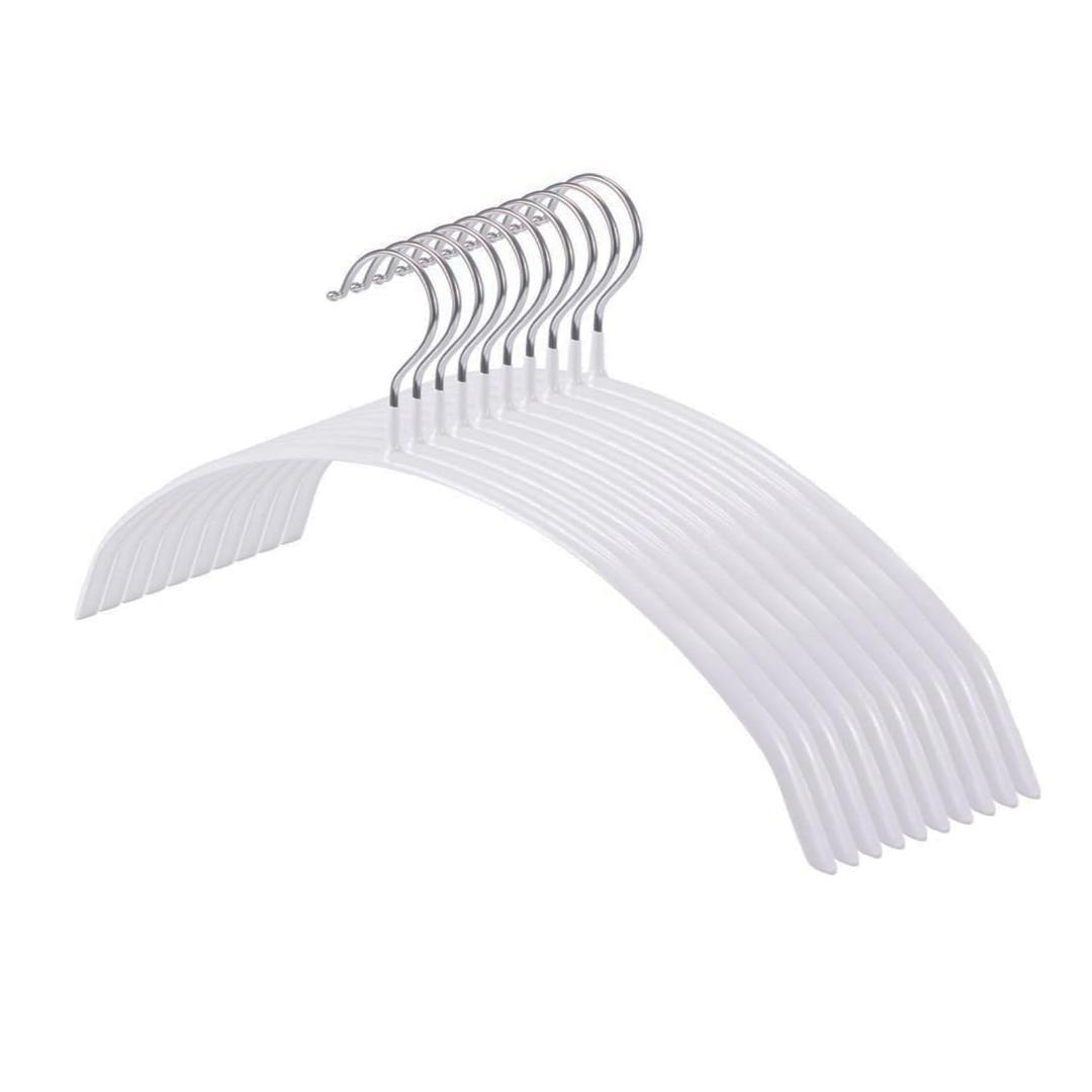 ハンガー全体に滑り止め加工がされているため、どのような素材の服でも滑りにくくなっています。また、アーチ形状になっているため一般的な三角形のハンガーのように角がなくシャツの型崩れがしにくいです。