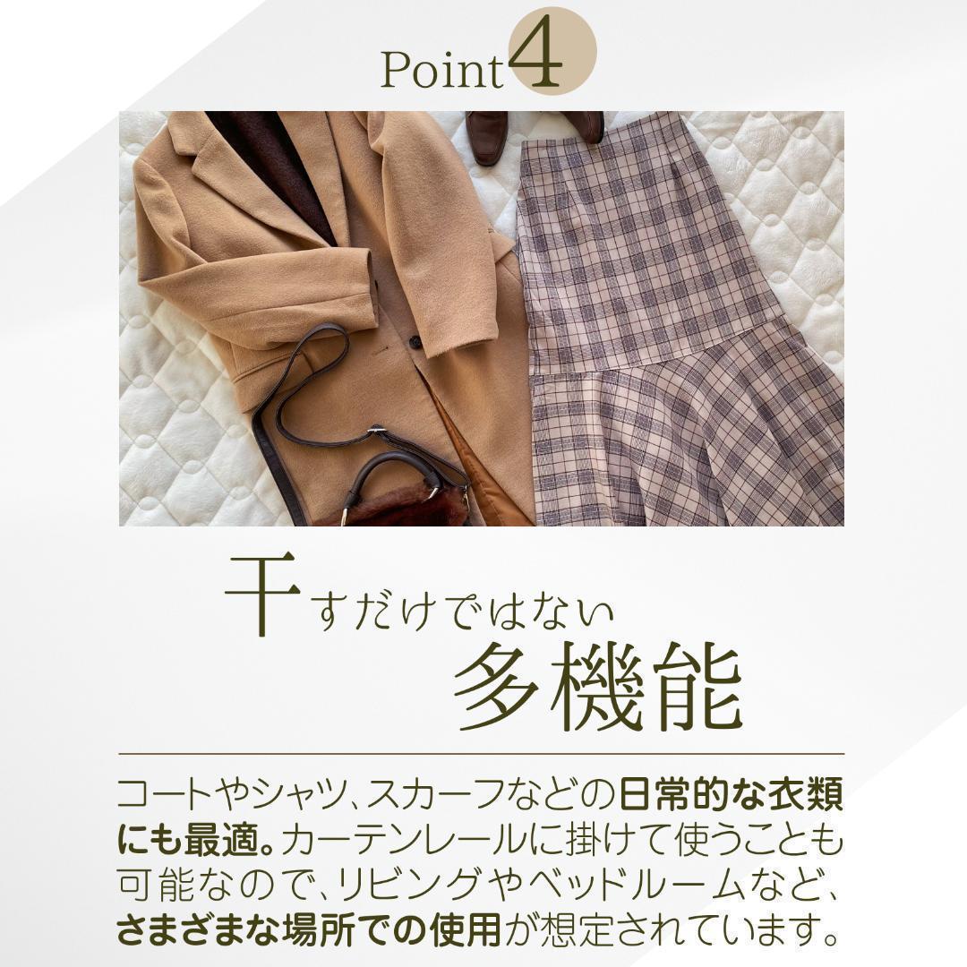 吊りフックが回転するのでカーテンレールなどにも服を掛けることができるのでさまざまな生活スタイルに馴染みます。
