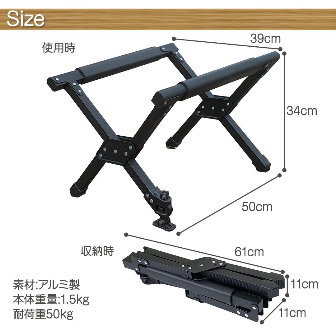 軽量かつ頑丈な防錆アルミニウム合金フレーム(木目調もアルミ)。本体重量 : 約1.5kg 耐荷重 : 約50kg