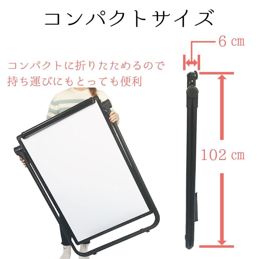 ホワイトボードの脚部分はコンパクトに折りたためるので、持ち運びにもとっても便利。ホワイトボードを隙間に収納することもできます。