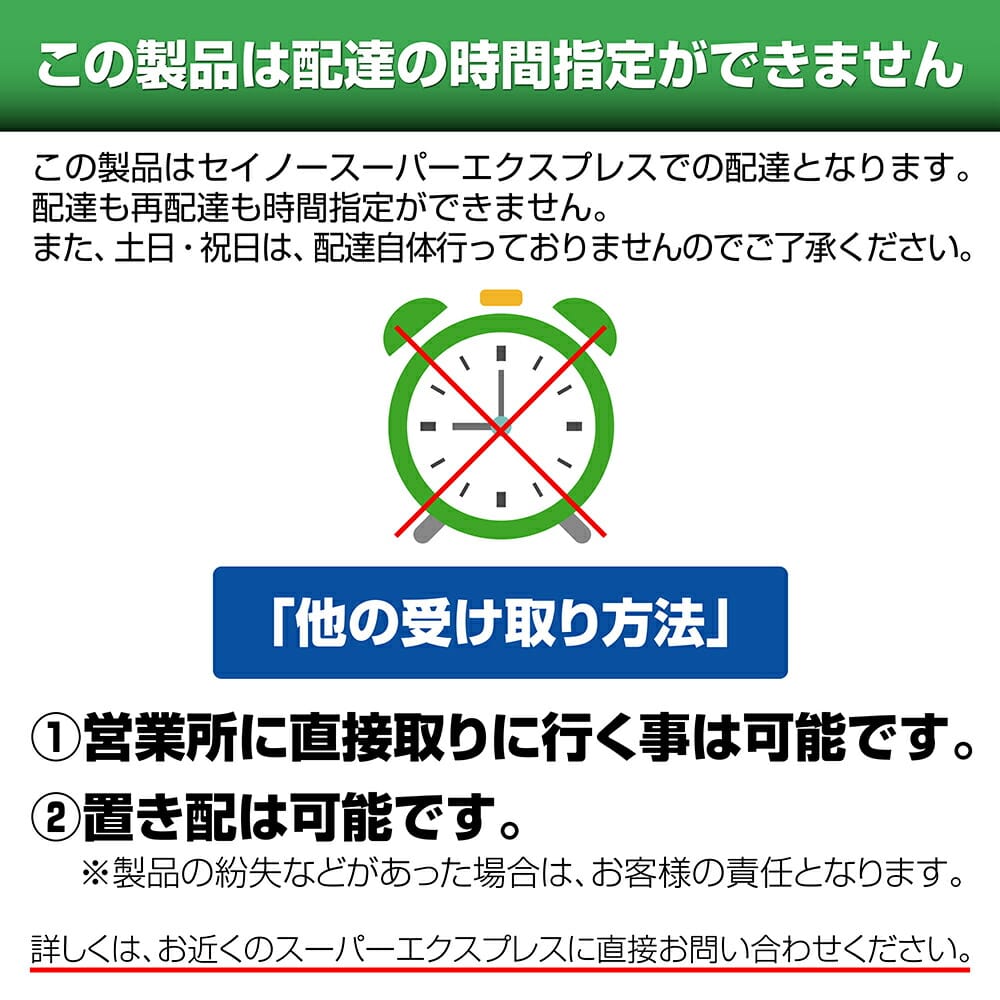 ●予約商品に関しましては、システムの設定上お届け日時指定を設定できますが無効となります。