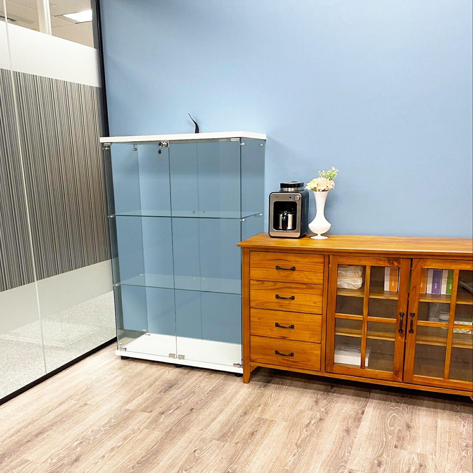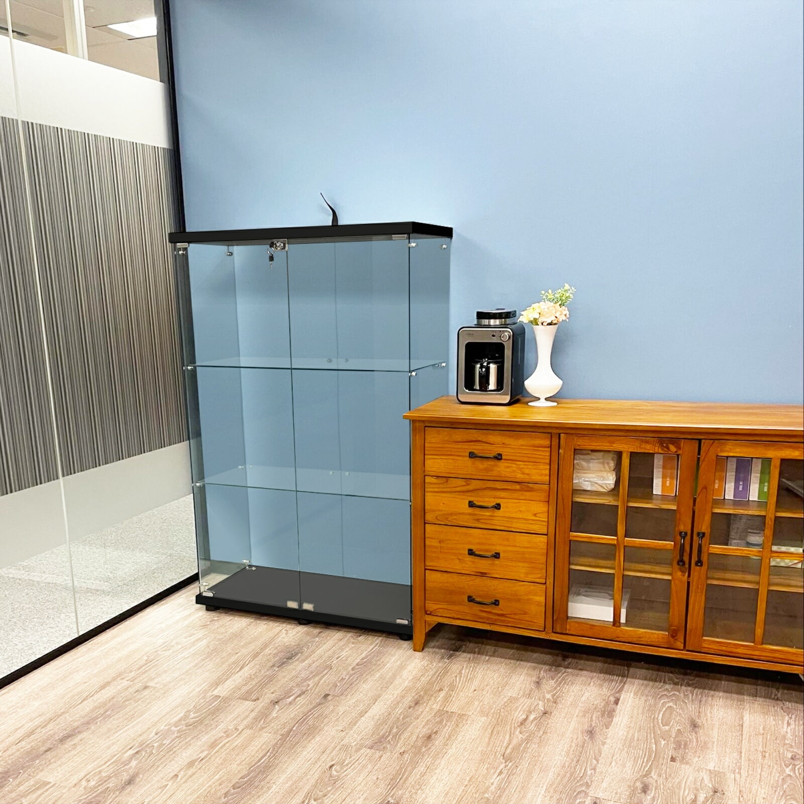店舗でのディスプレイケース、ショーケースとして。高価なゲームやおもちゃなどの商品をを保管しながら陳列可能。アート作品や模型などの展示にもおすすめです。