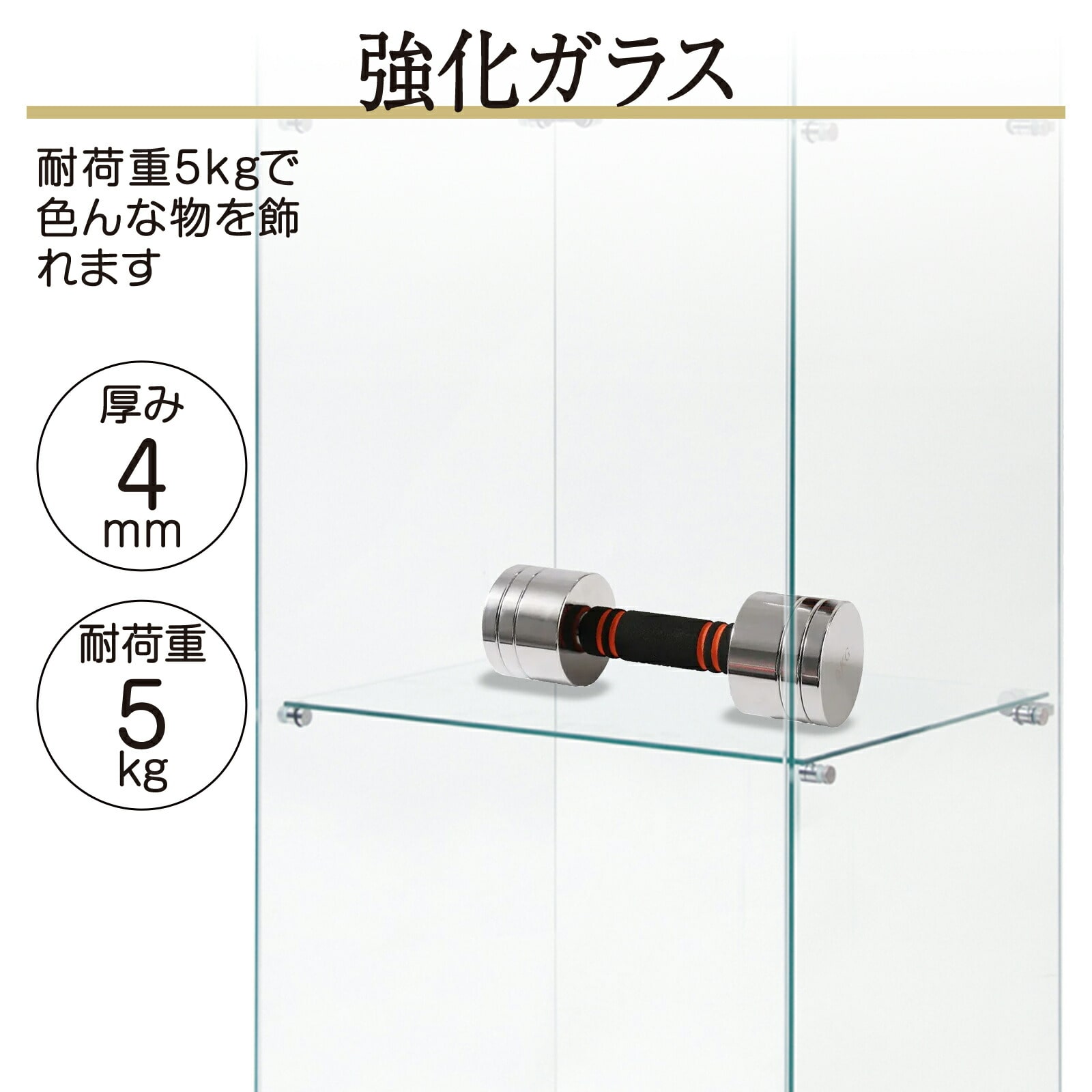 ガラス(棚)板の耐荷重:約5kg