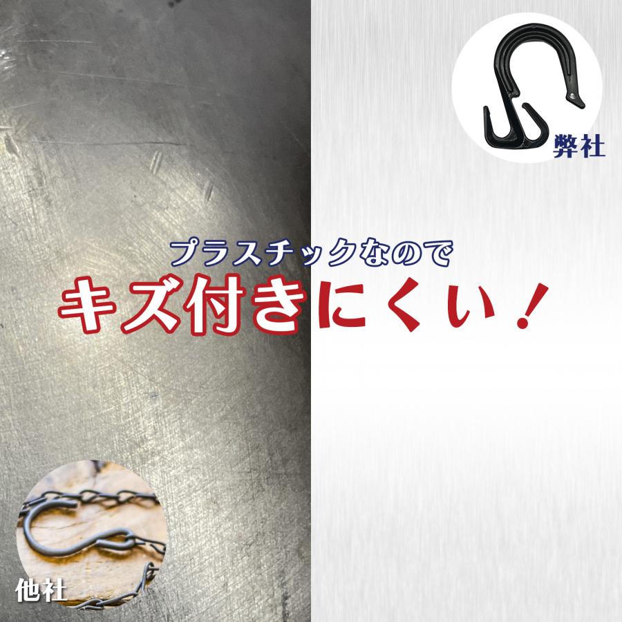 また、フックに鉄ではなく強化プラスチックを使用している為、誤って車体を傷つける心配もございません。