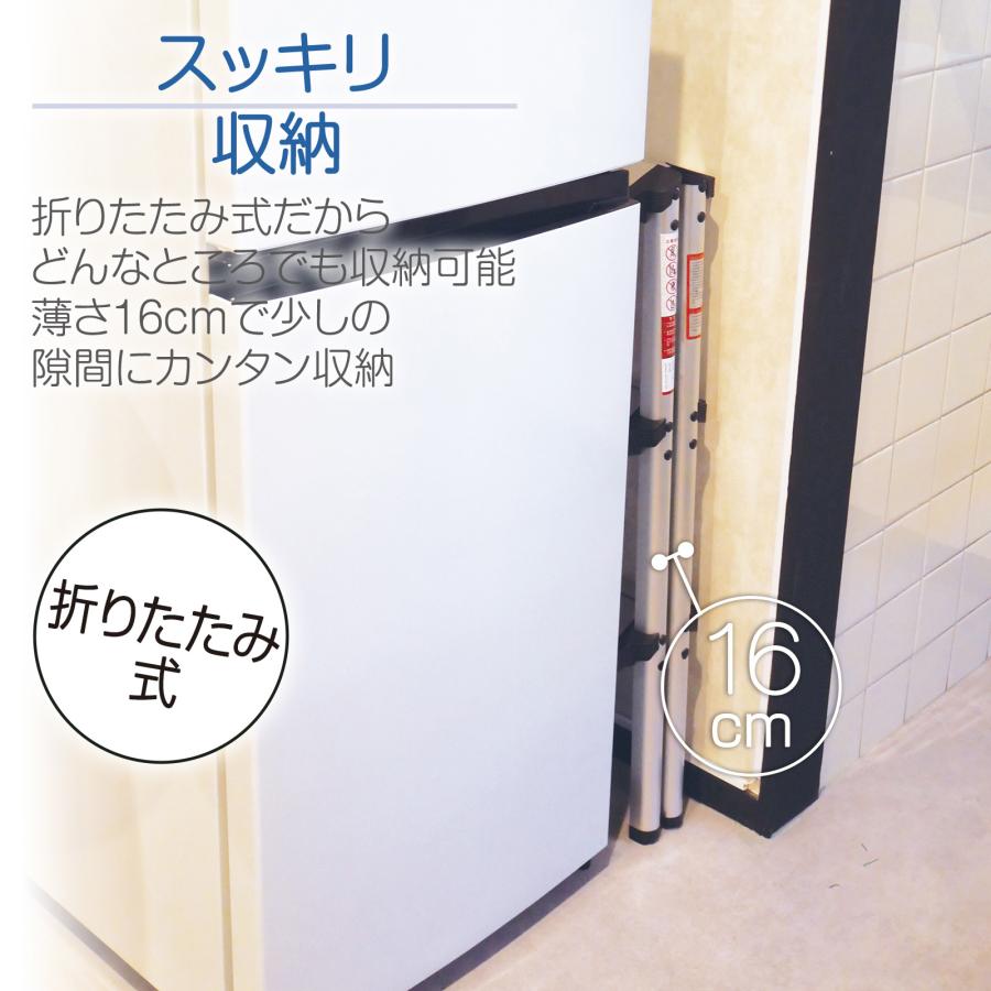 折りたたみ式だからどんなところでも収納可能。薄さ約16cmの隙間でもカンタンに収納ができます。