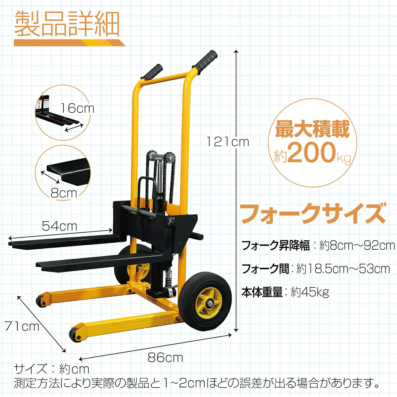 運転免許不要の「ハンド」フォークリフト。最大約200kgまで積載出来る優れた利便性!