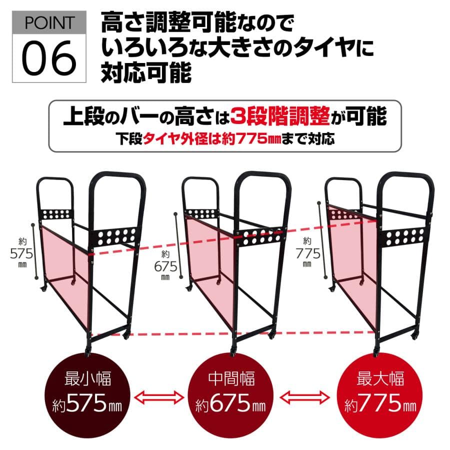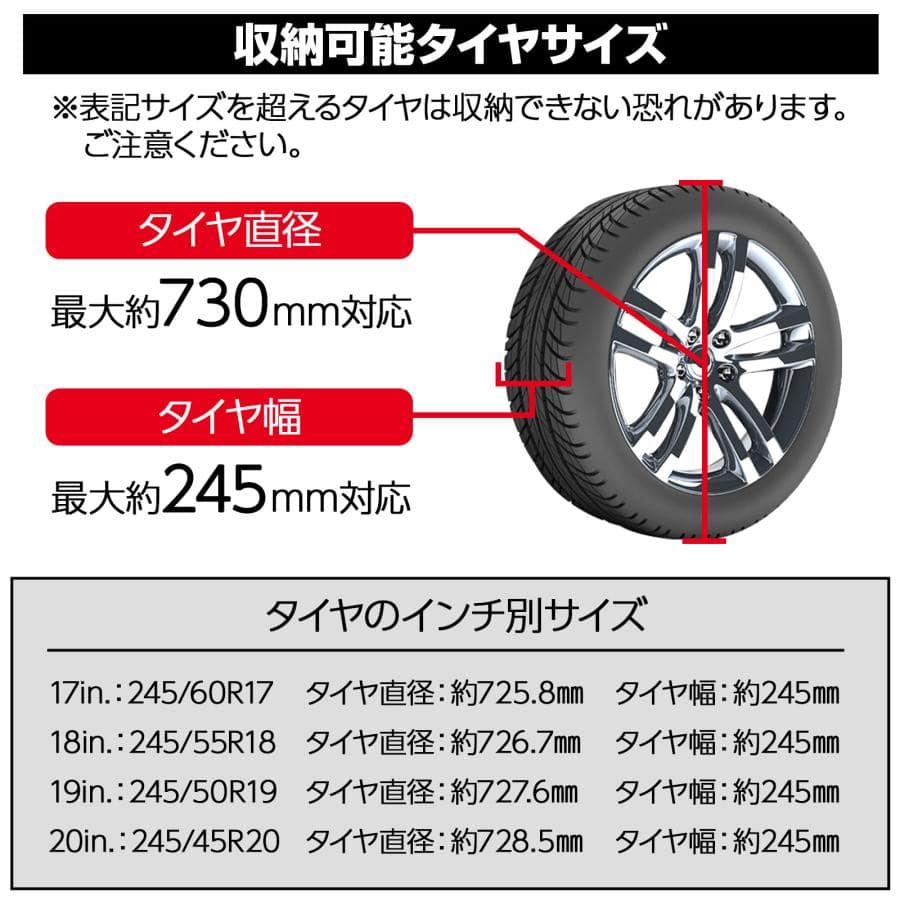 表記サイズを超えるタイヤは、収納できない恐れがあります。ご注意ください。