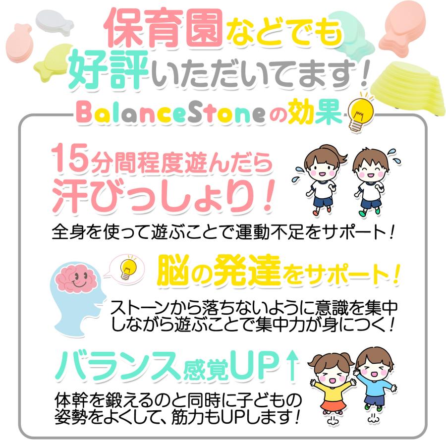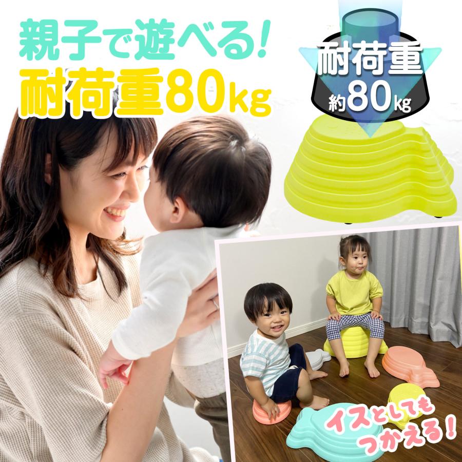 耐荷重約80kg。親子で一緒に「飛び石遊び」が楽しめるほか、 施設やイベントでは広い空間に沢山のバランスストーンを配置して、 大勢の子供たちに遊んでもらう事も可能です。