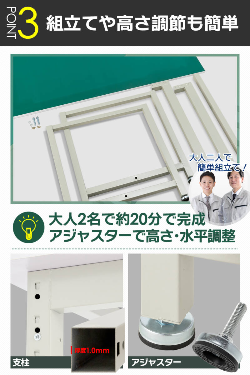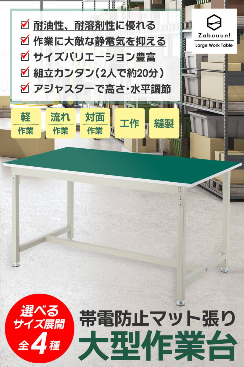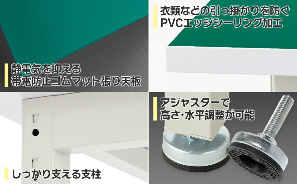 【特徴1】静電気を抑える、帯電防止のゴムマット張り天板を採用!