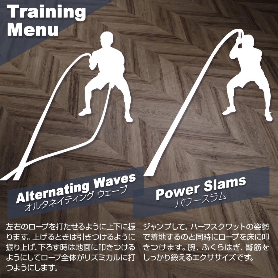 高密度に編み込まれたロープはハードなトレーニングにも耐えられる高耐久性のロープを使用。