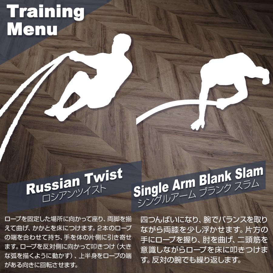 高密度に編み込まれたロープはハードなトレーニングにも耐えられる高耐久性のロープを使用。