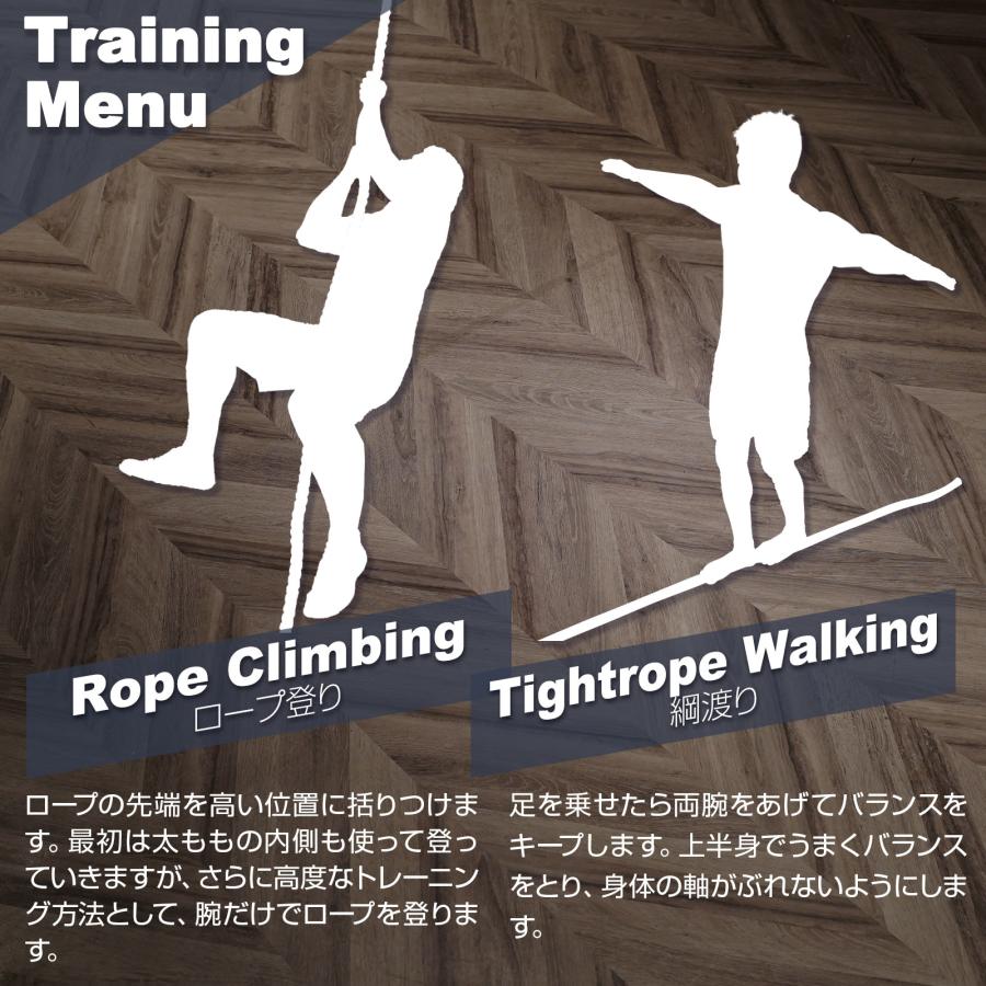 全身の筋力強化や体幹、バランス感覚を鍛えることができます。