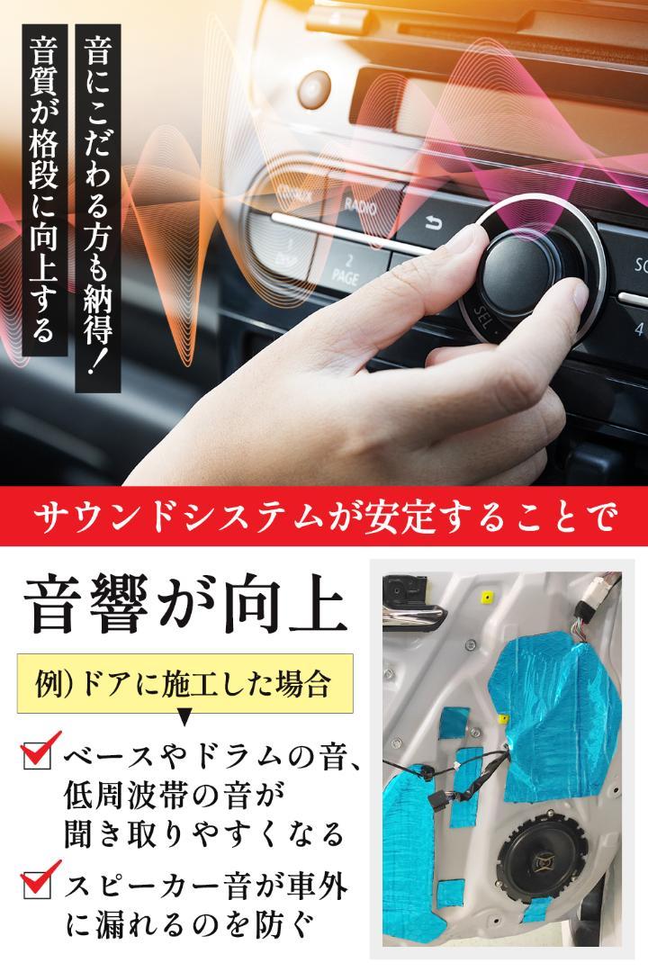 車外からの騒音、ロードノイズ、雨音、エンジン音などビビリ音、制振音を低減!!