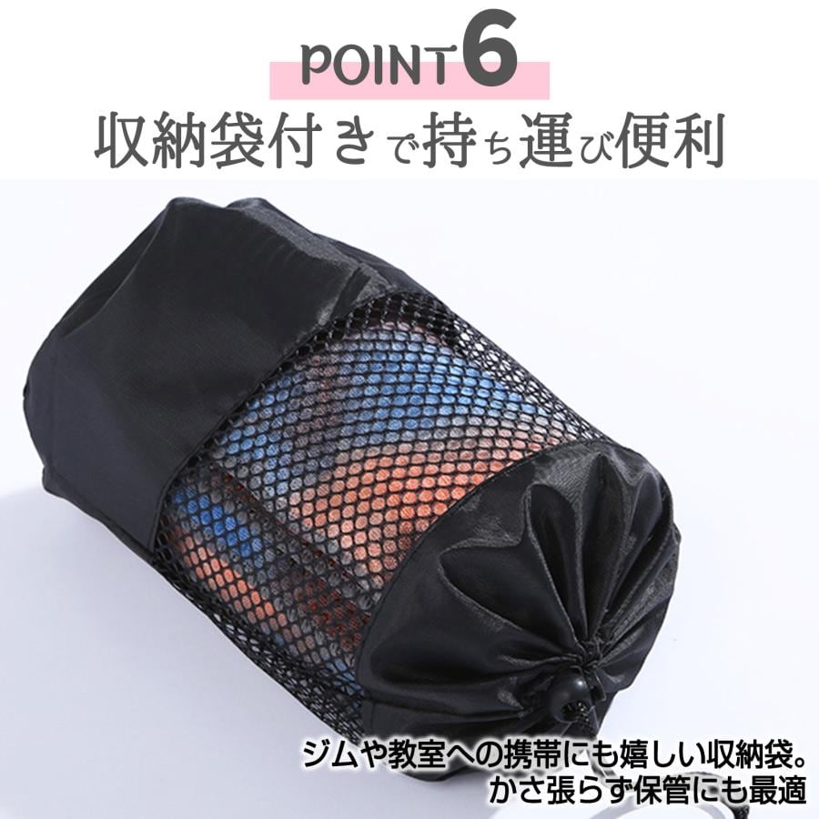 メッシュ収納バッグ付いているから、ヨガタオルの持ち運びは便利です。