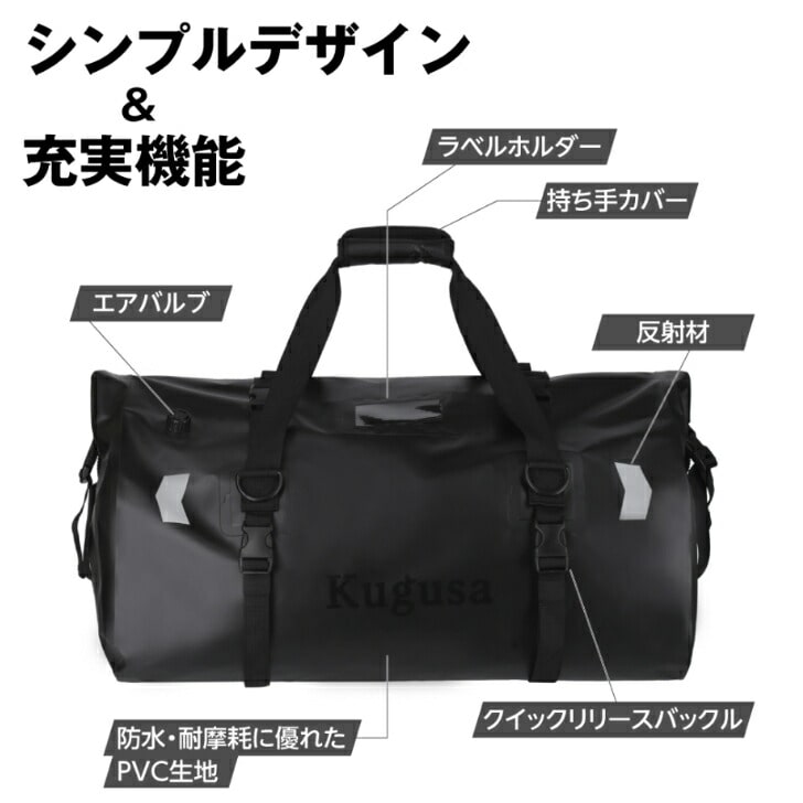 高い防水性が特徴のバイク用シートバッグです。雨や紫外線によって経年劣化しにくい丈夫な防水素材の500D PVCを使用し、縫い目なしのシームレス加工。