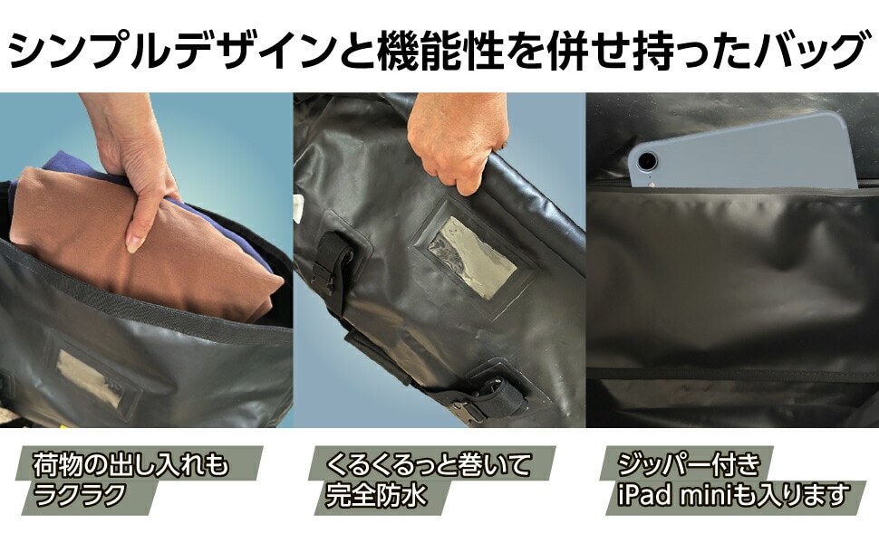 ロールトップデザインがより防水性を強化しました。(3回巻きで効果大)