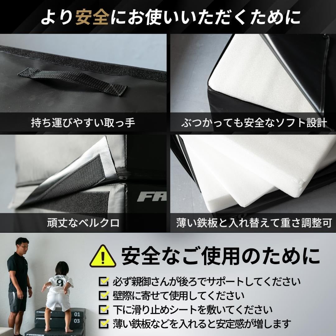【高さ調節自由】 各プライオボックスの高さは異なるので、組み合わせ方によって、高さの調節が自由自在に。小学生から中学生へとお子様の成長に合わせて、レベルやトレーニングの種類に合わせた使い方で続けられます。