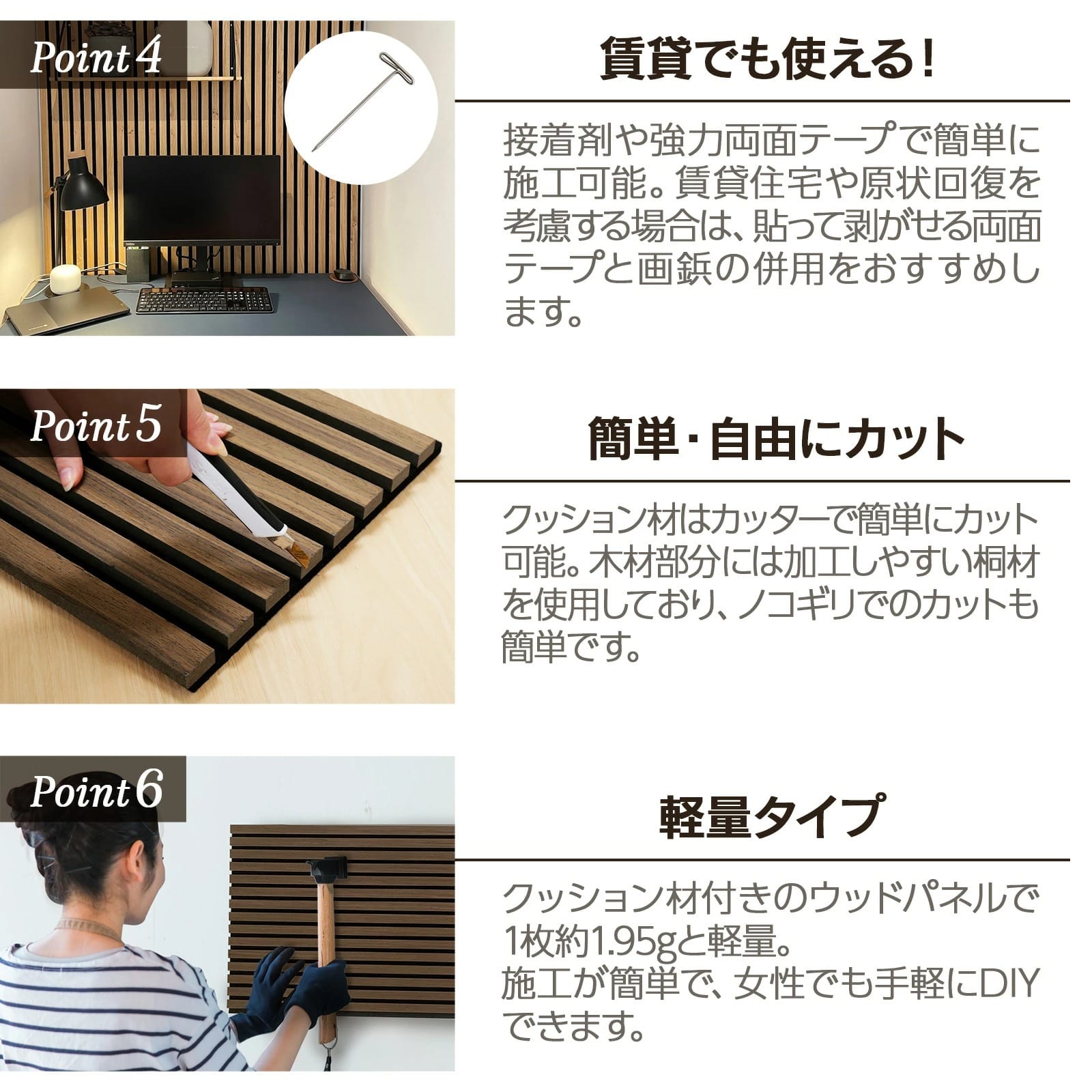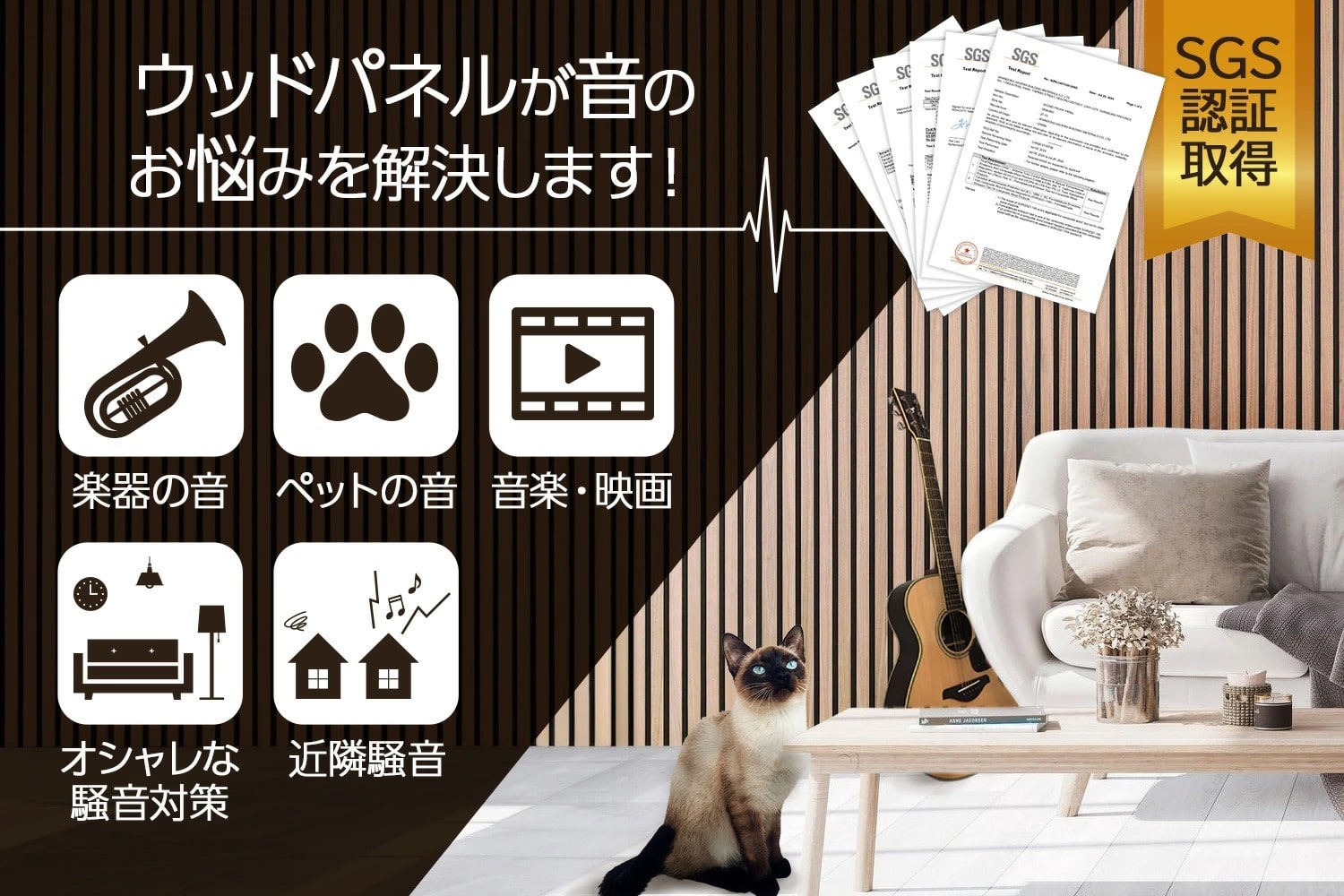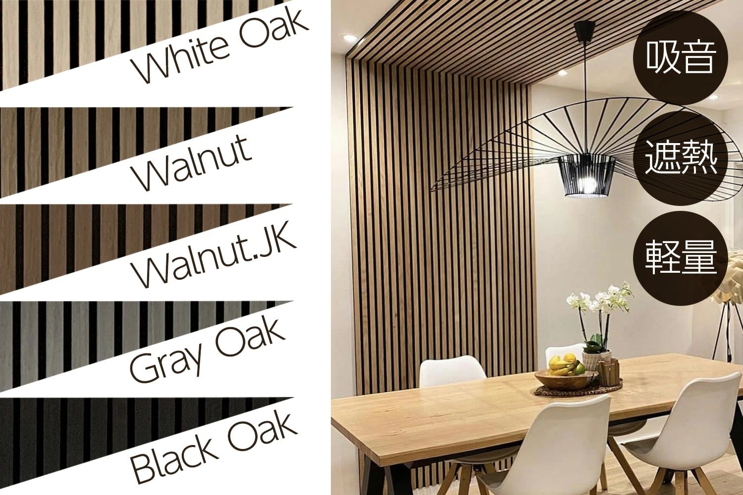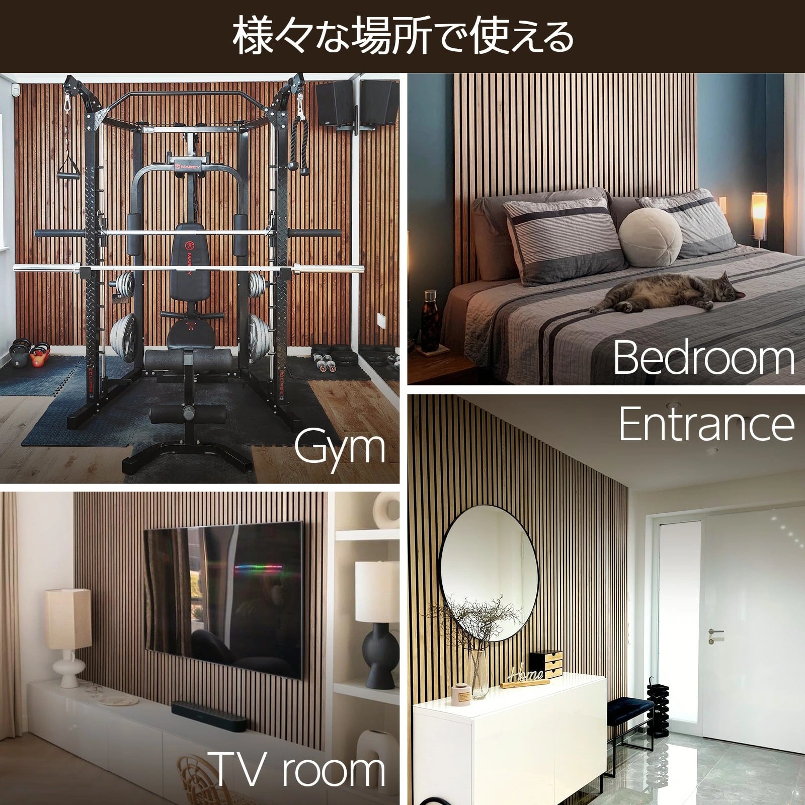 材質:天然木目の圧板 + 中密度繊維板 + 高密度吸音ポリエステル繊維