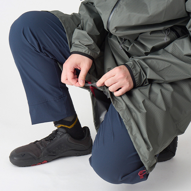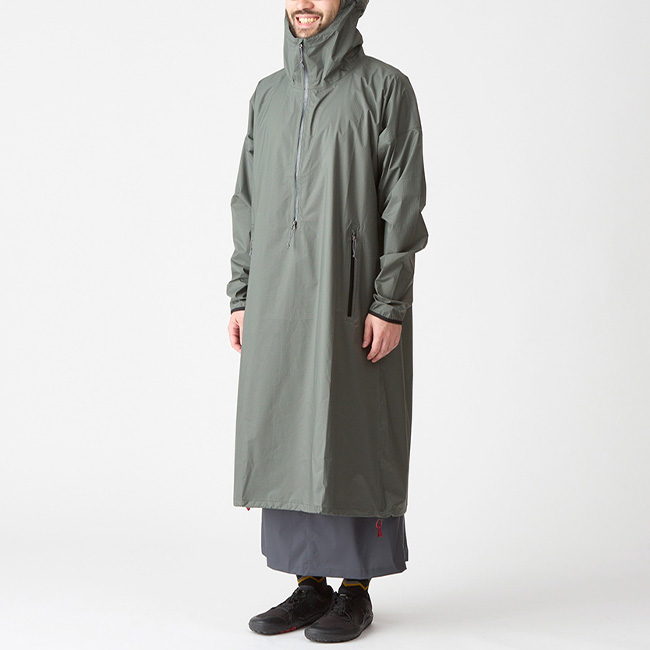 雨の日のクラシックルート歩きに最適なプルオーバータイプのロングコートです。長めの丈で頭から膝までしっかりカバーし、雨の日でも安心して着用できます。