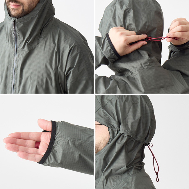 防水透湿素材を採用しており、蒸れが気になる場合はフロントファスナーを下から開けて通気性を確保可能。