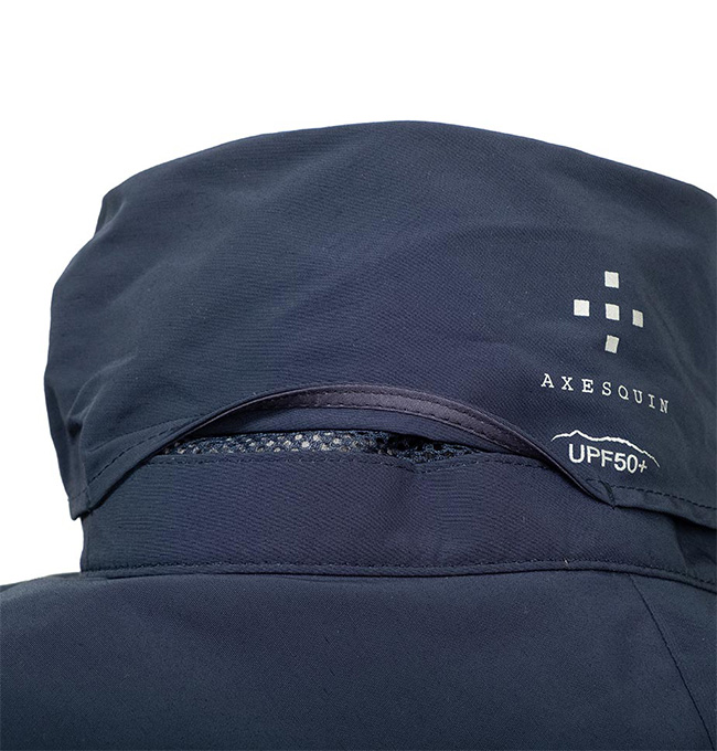 撥水性、防風性、透湿性を備えた丈夫な素材でUPF50+をクリアしています(実測値90以上)。