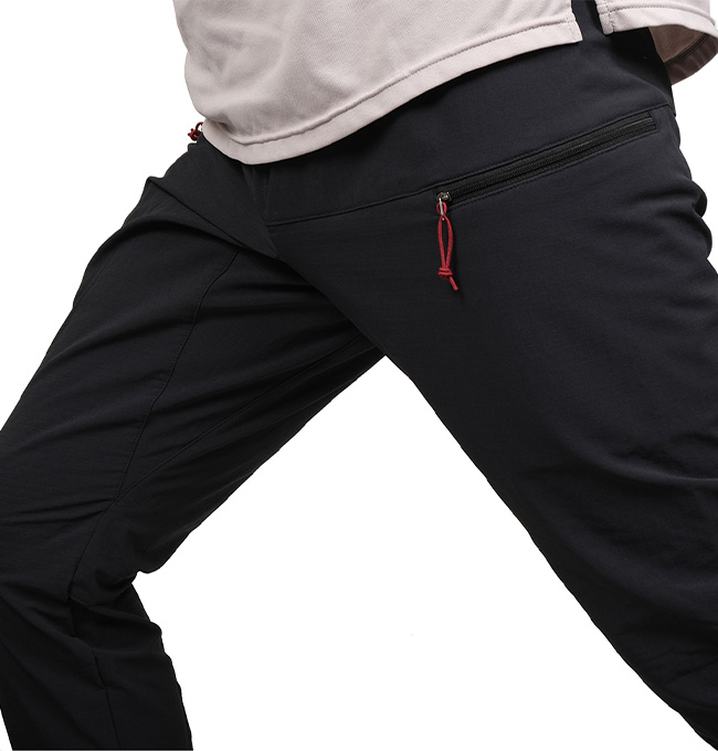 バックパックのヒップベルトに干渉せず、シノギングの邪魔にならないポケットは手を自然におろした位置にあるので使いやすさに秀でています。