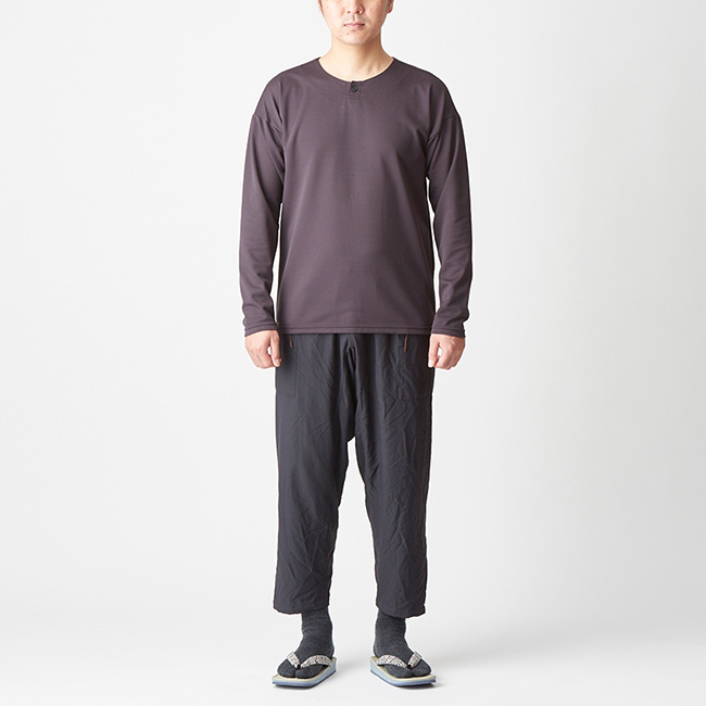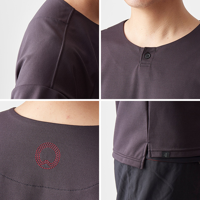 丸首のデザインは一枚で着てもいいですし、上にノラギやミチクサを羽織ってもさまになります。風が気になるときにはクナドを重ねて凌ぎましょう。ハンモックポイントに着いて休憩するときにはハヲリモノoctaを羽織って汗を吸わせることで汗冷えを防ぐことができます。