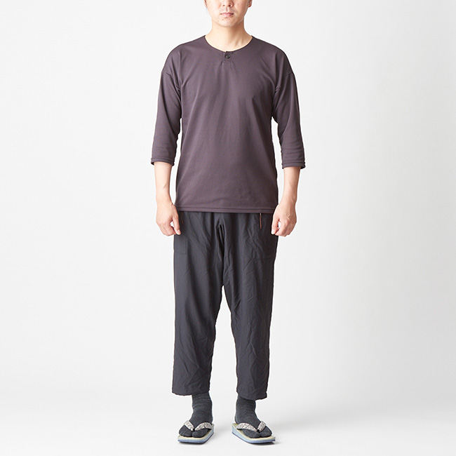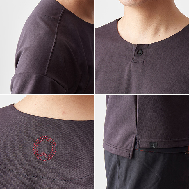 丸首のデザインは一枚で着てもいいですし、上にノラギやミチクサを羽織ってもさまになります。風が気になるときにはクナドを重ねて凌ぎましょう。ハンモックポイントに着いて休憩するときにはハヲリモノoctaを羽織って汗を吸わせることで汗冷えを防ぐことができます。