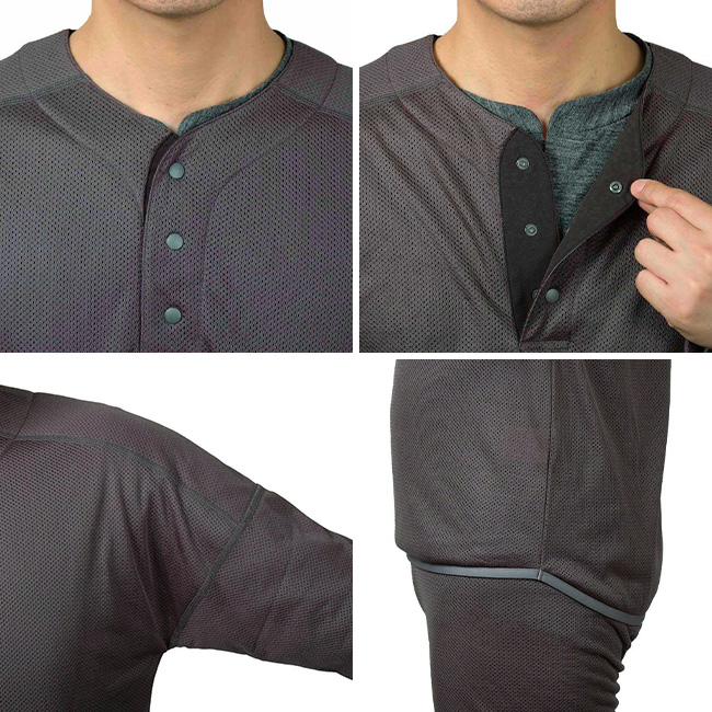 画期的なポリエステル素材の帝人Octaは、同じ直径のポリエステル繊維の重さに比べて約半分と軽く、繊維の中心の空洞部分と、表面に放射線状に配列された八本の突起が汗を素早く吸い上げて拡散させるだけではなく、その独特の形状によってできる空間に多くのデッドエアーを含むことで遮熱保温効果を実現します。