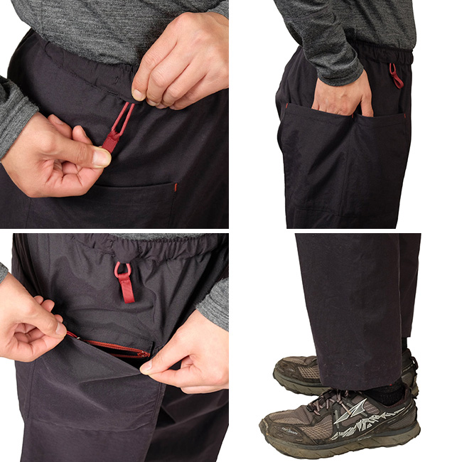 ウエストはストレッチ+ドローコード仕様で調整しやすく、ポケットも充実。
