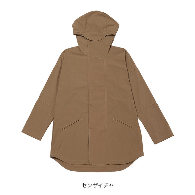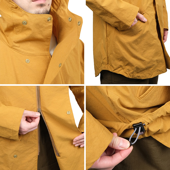 峠越えの道から富士を眺めたり、ススキの写真を撮ったり、冬枯れのクラシックルートをのんびり訪ねたりするのに丁度いいパーカーです。ジッパーとドットボタンで止めるダブルの前合わせがほどよいアクセントになっていて、腰周りを覆う着丈が冬の寒さや冷たい風を和らげます。