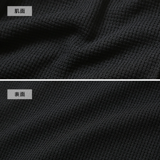 素材に採用しているワッフル素材は速乾吸水性に優れており、凹凸のある生地感は蒸し暑い夏場でも肌離れがよくさらりと快適です。