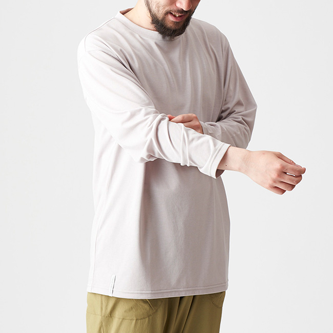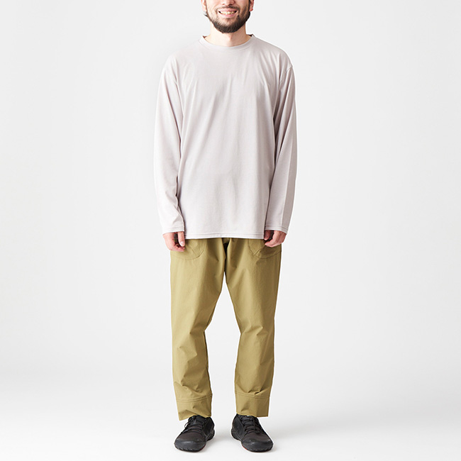 渓から吹き上げる風を感じながら峠へのトラバースを歩くのにちょうどいい、吸汗速乾性に優れる旭化成のSUREDRYを採用したロングスリーブTシャツです。