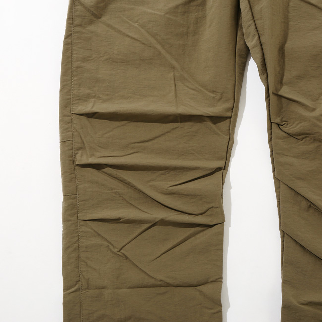 ナイロン100%でありながらほとんど光沢のないナチュラルな風合いと膨らみ感のある素材はタッサーナイロンのパンツと同じです。