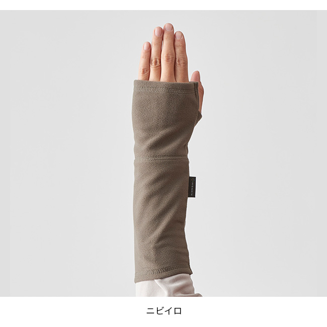【素材の特長】このハンドウォーマーに採用しているPONTETORTO TECNOPILEフリースは、薄手でありながら目の詰まったベルベットのような起毛が特徴で、軽くてちょうどいいあたたかさを提供します。