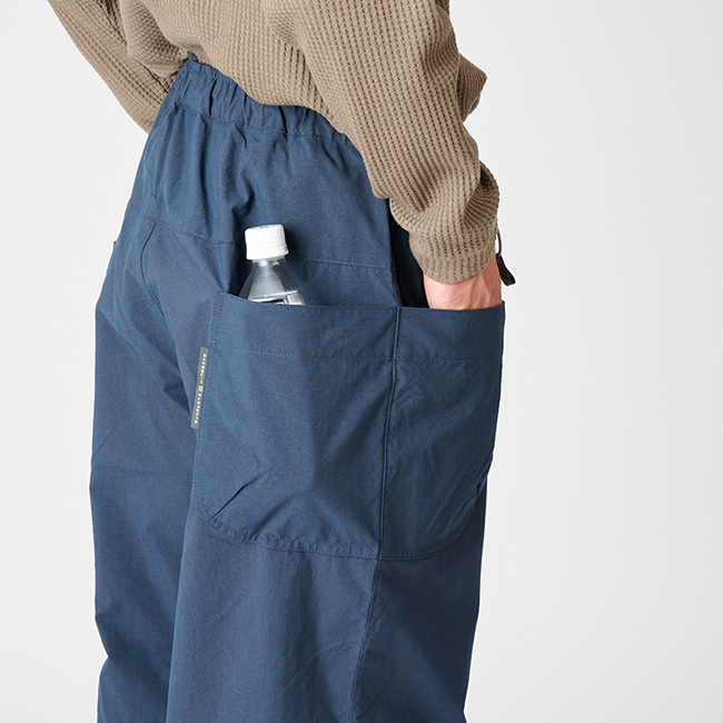 膝下の前後に長いダーツを設けることで、ワイドパンツでありながらすっきりとしたシルエットに仕上がっているので、クラシックルート歩きの他に普段にも使いやすそうです。