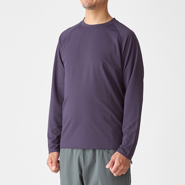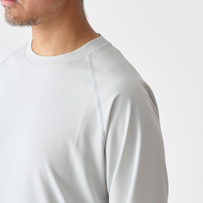 シンプルなデザインながら、高いUVカット機能を備えたロングスリーブTシャツ。紫外線に加え、近赤外線にも着目した素材を採用し、強い日差しから肌を守ります。
