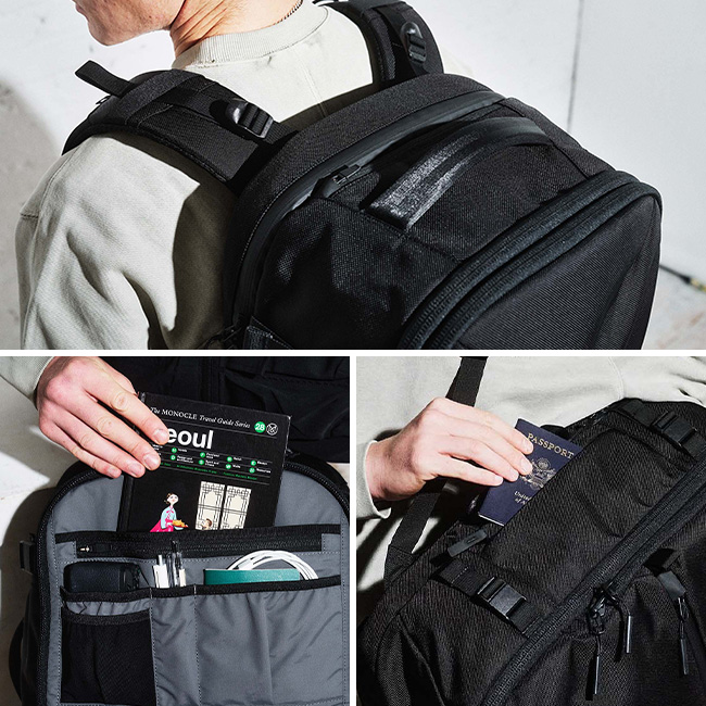 Travel Pack3は、スマートな旅を提供できるようデザインされた機内持ち込み可能な多目的なバックパックです。トラベルの必需品が取り出しやすく、セキュリティチェックを颯爽と通過し、手荷物受取り所に寄ることなく、スムーズに出掛けて行けるようデザインされています。