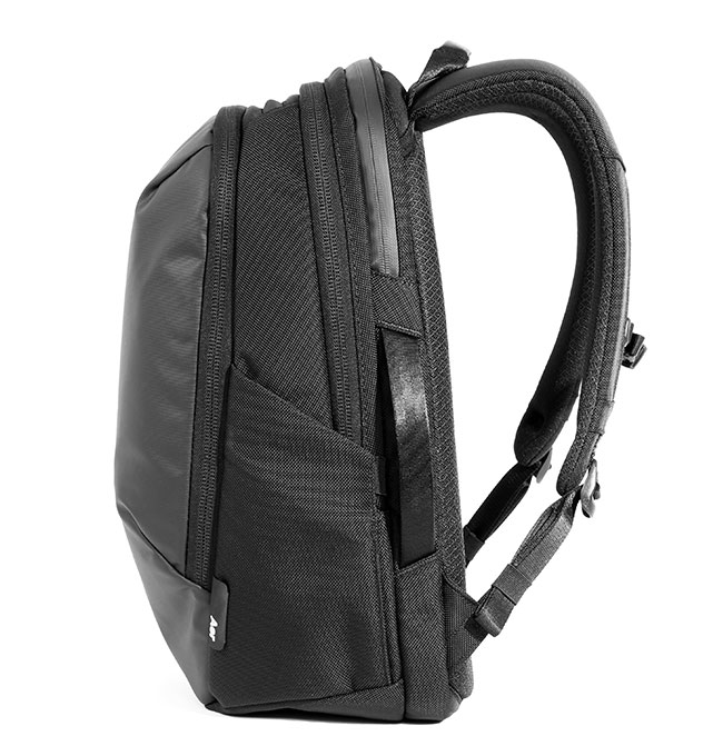 ミニマルなデザインの中にギアを収納できる複数のコンパートメント、自立性の高さが特徴です。
