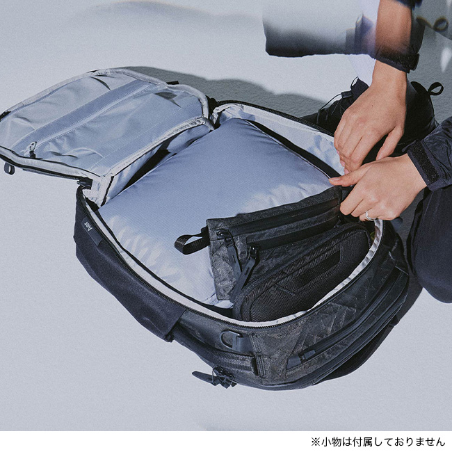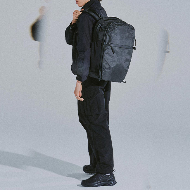 高い耐久性と軽量性、優れた収納力を兼ね備えたトラベルバックパック。